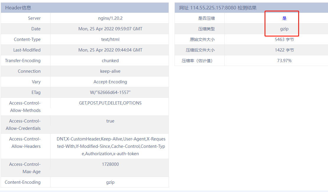 检测服务端是否开启gzip压缩:http://tool.chinaz.com/gzips/?q=114.55.225.157%3A8080