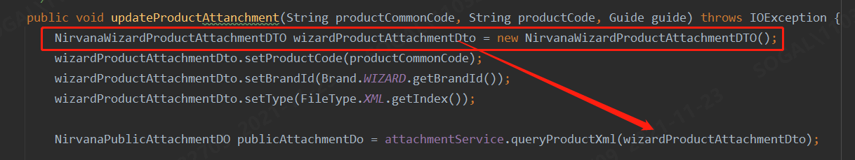 但是由于attachmentService.queryProductXml()的参数是内部创建的,所以无法通过外部传入一个一样的对象
