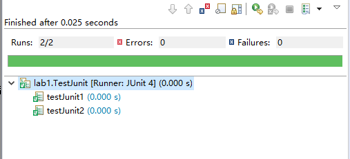右键点击TestCase.java->Run As->Junit Test,结果如下: