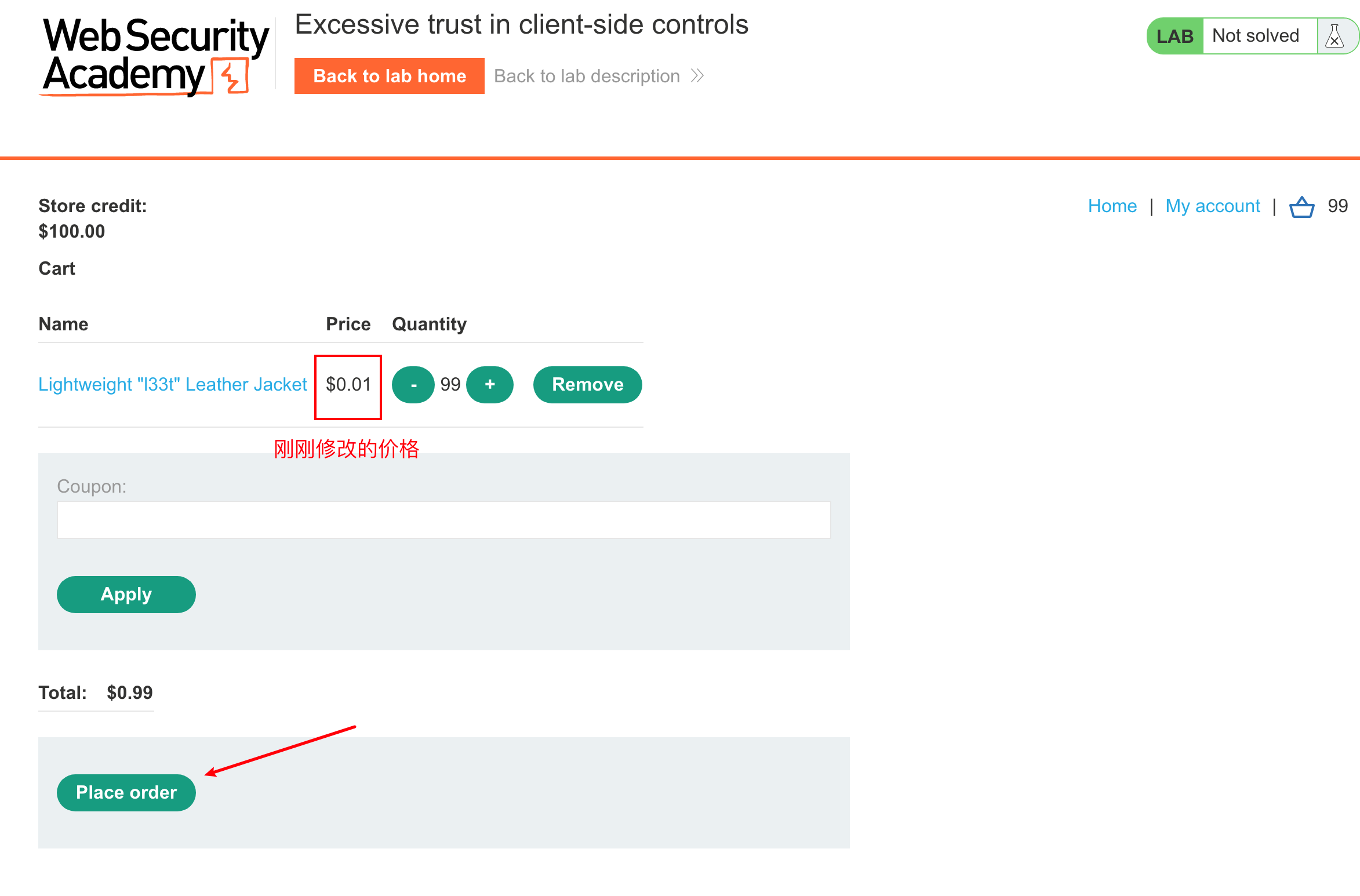 使用wiener:peter登录后我们先把任务物品加入购物车,点击支付