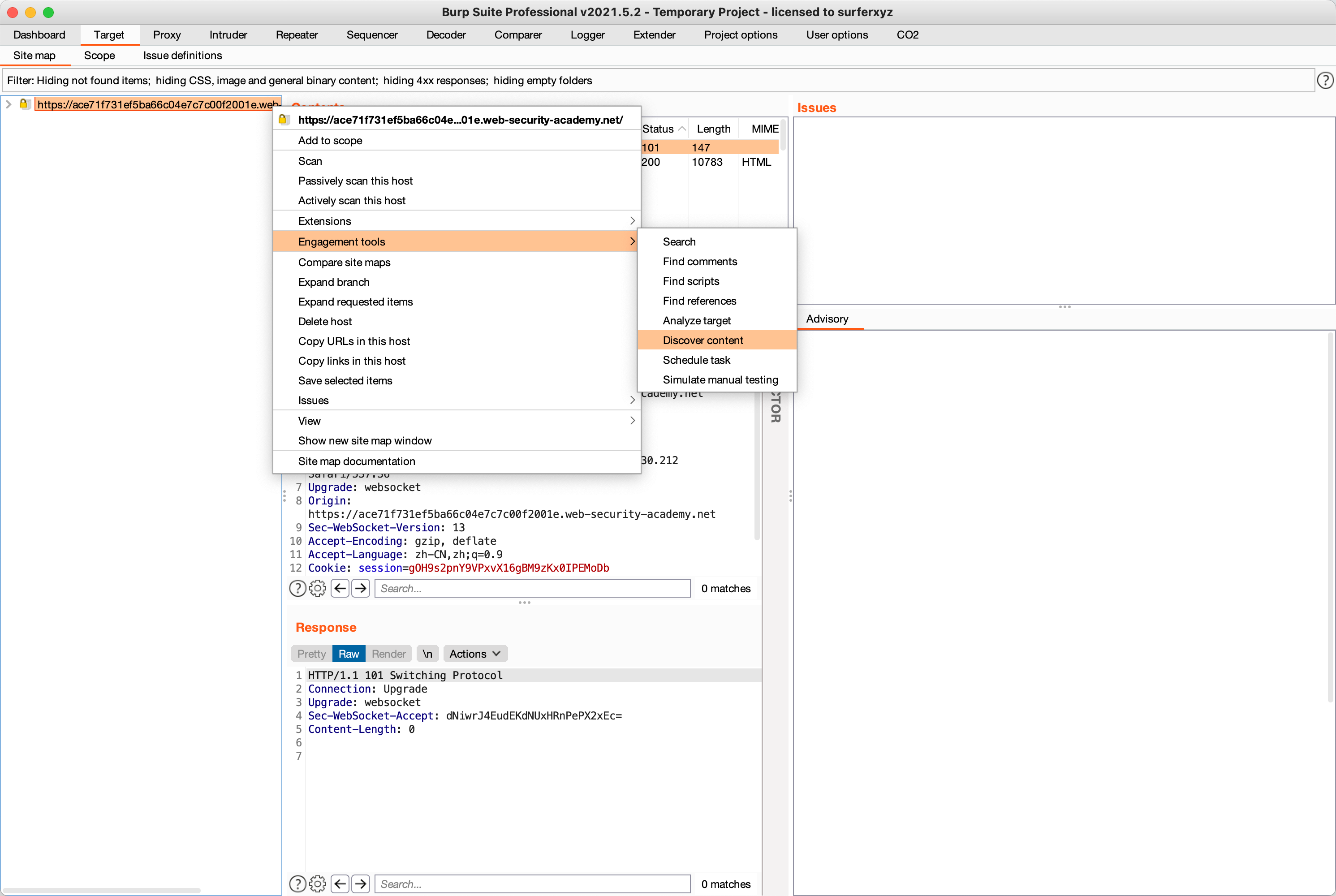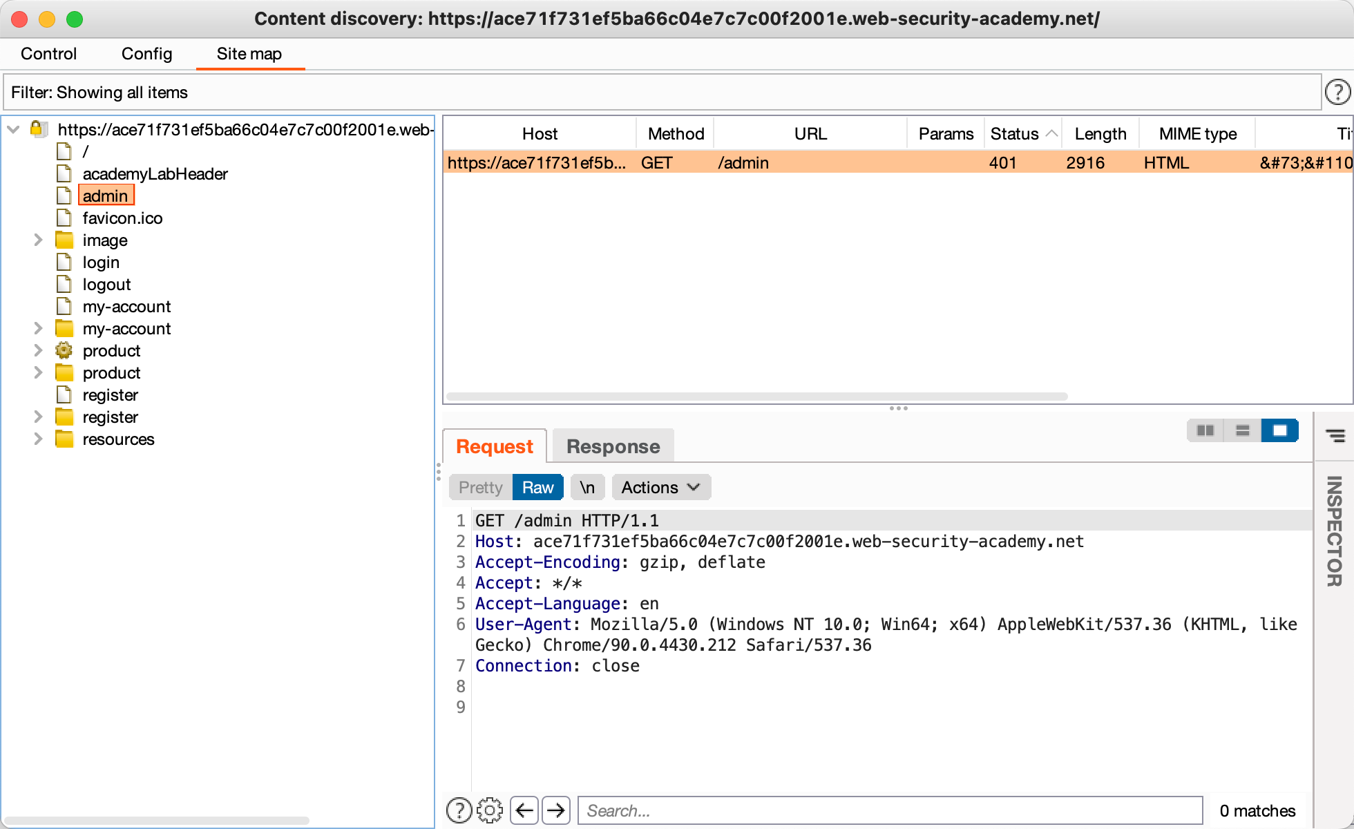 我们在访问这个实验后,在 burp 页面扫描改站点目录(爆破)