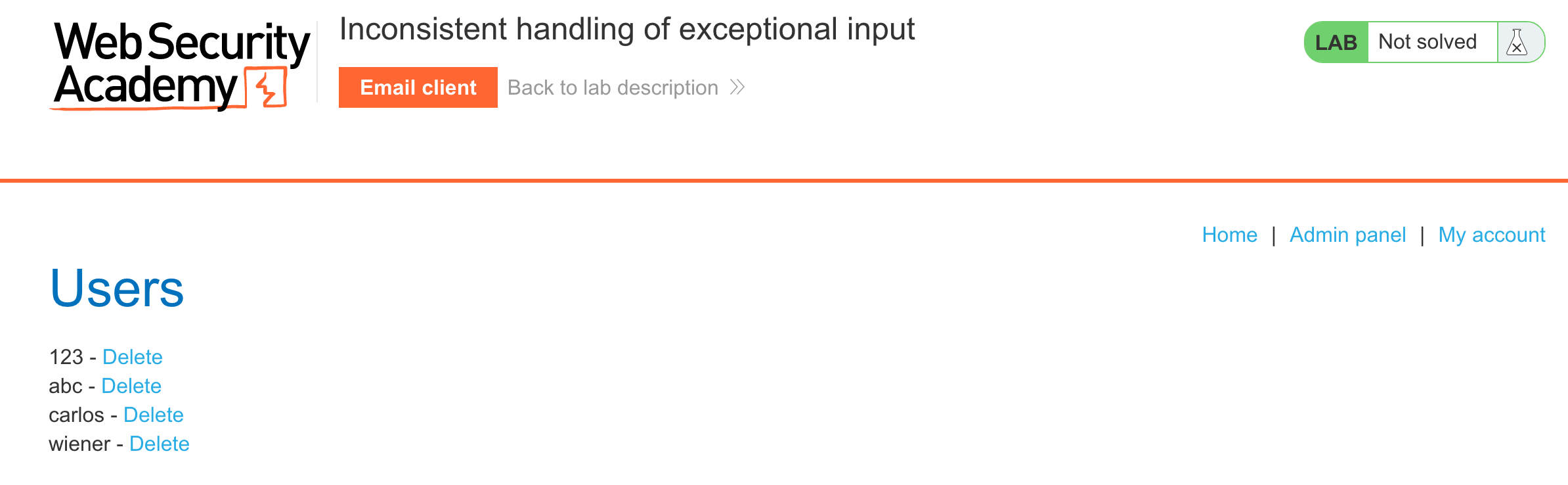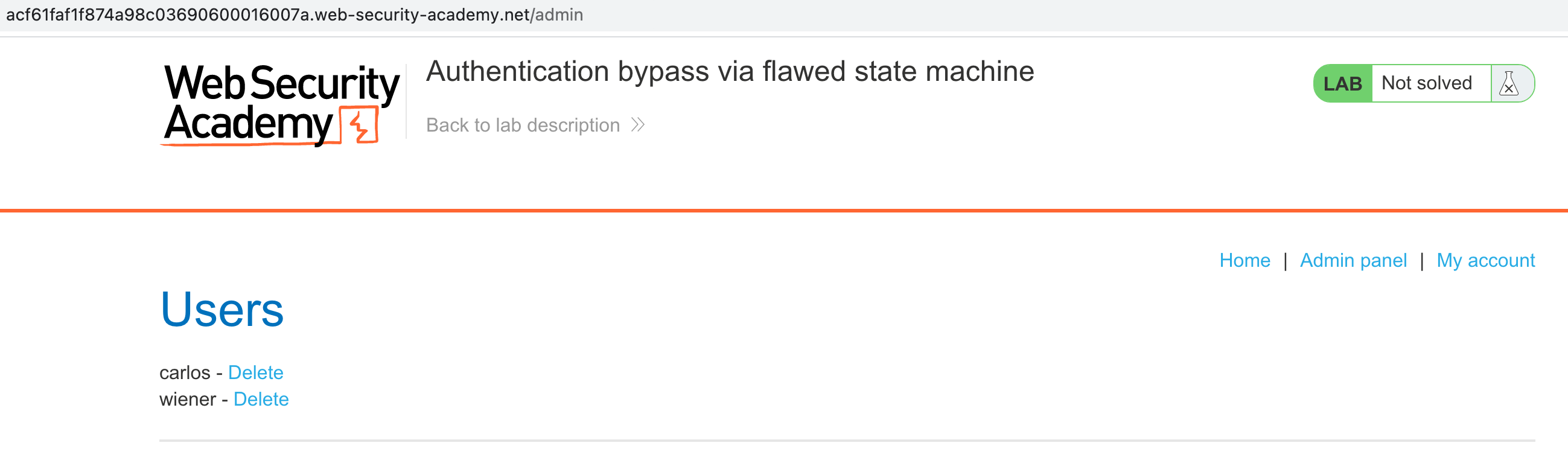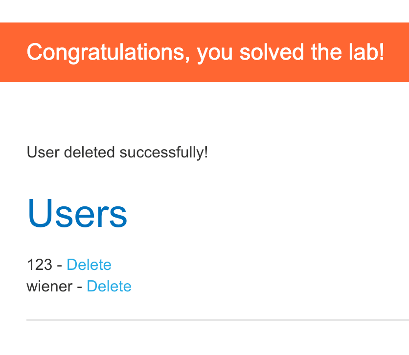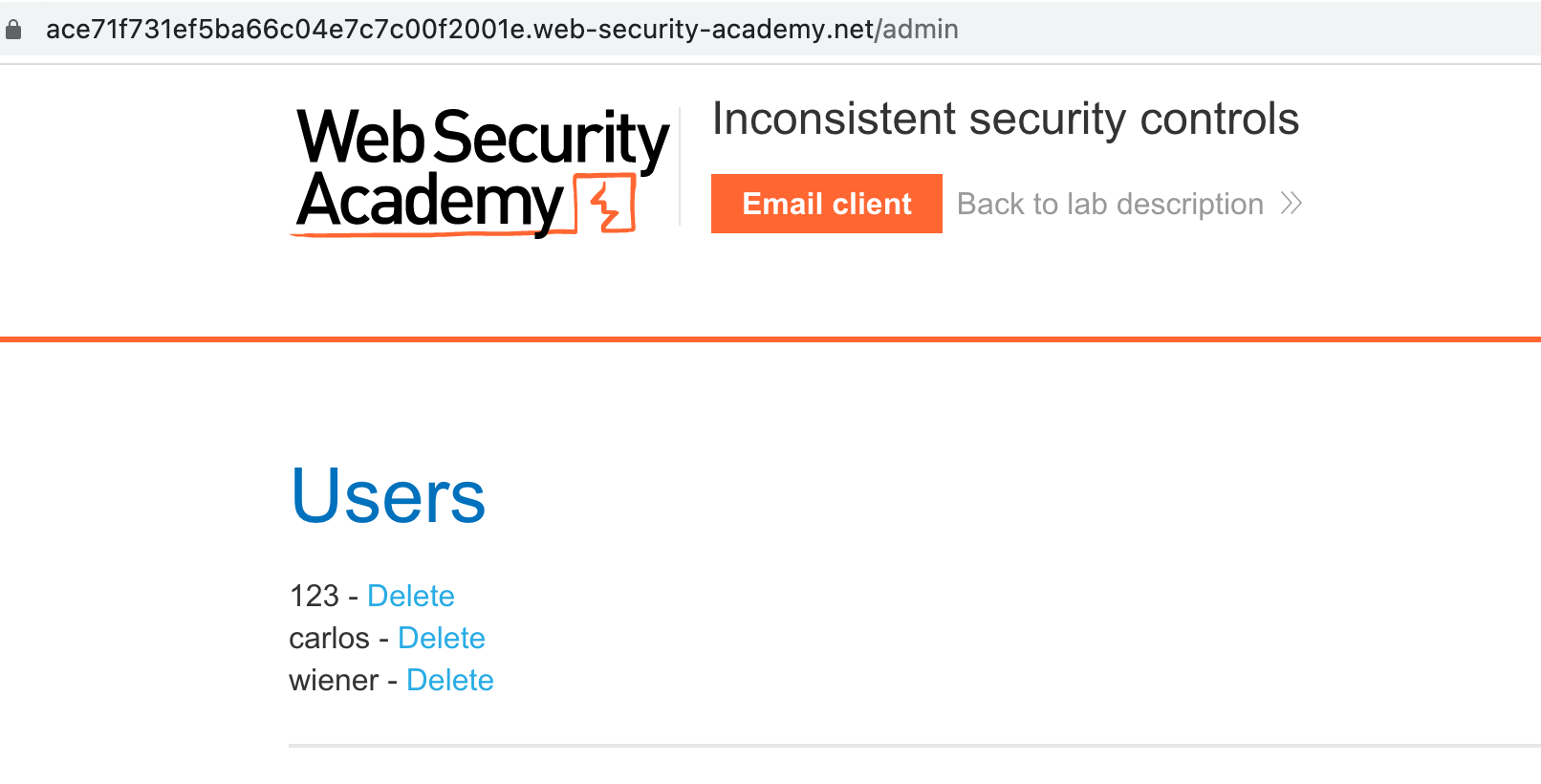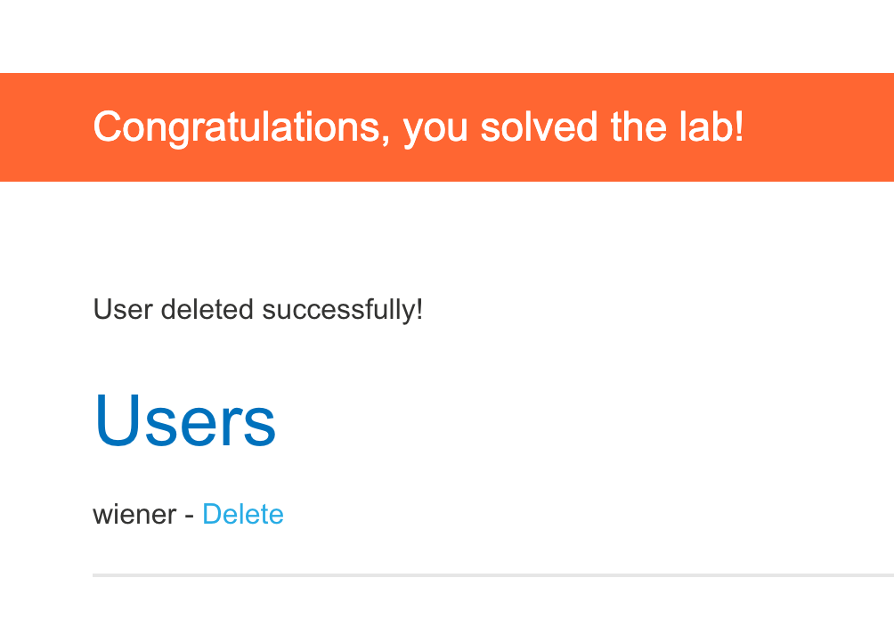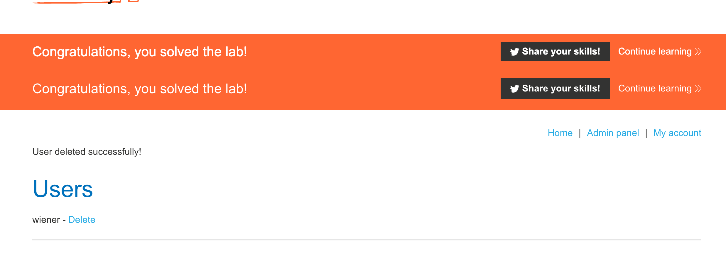 密码修改成功,接下来登录管理员账号并访问 /admin 删除掉 carlos 即可