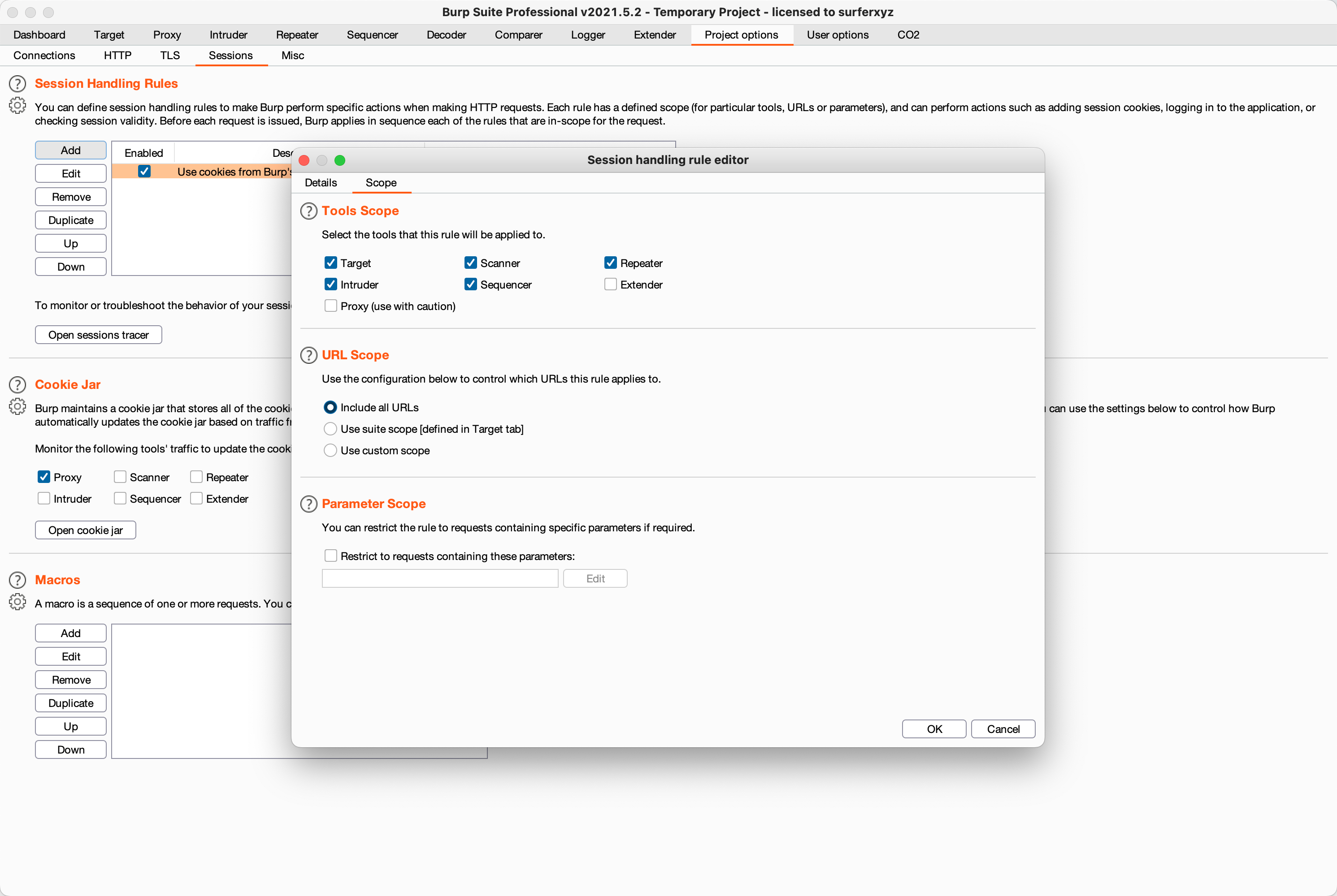 点击 Add 然后点 Scope 把 URL Scope 改为 Include all URLs