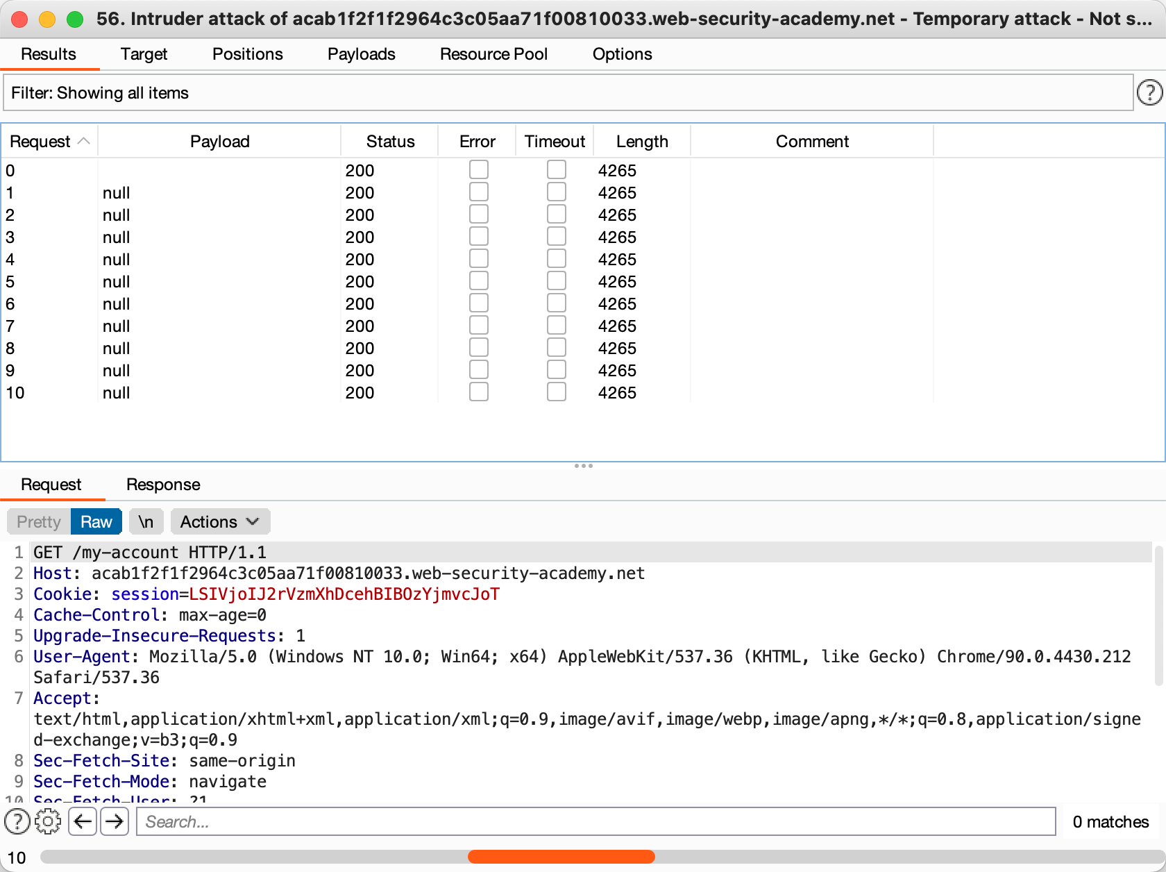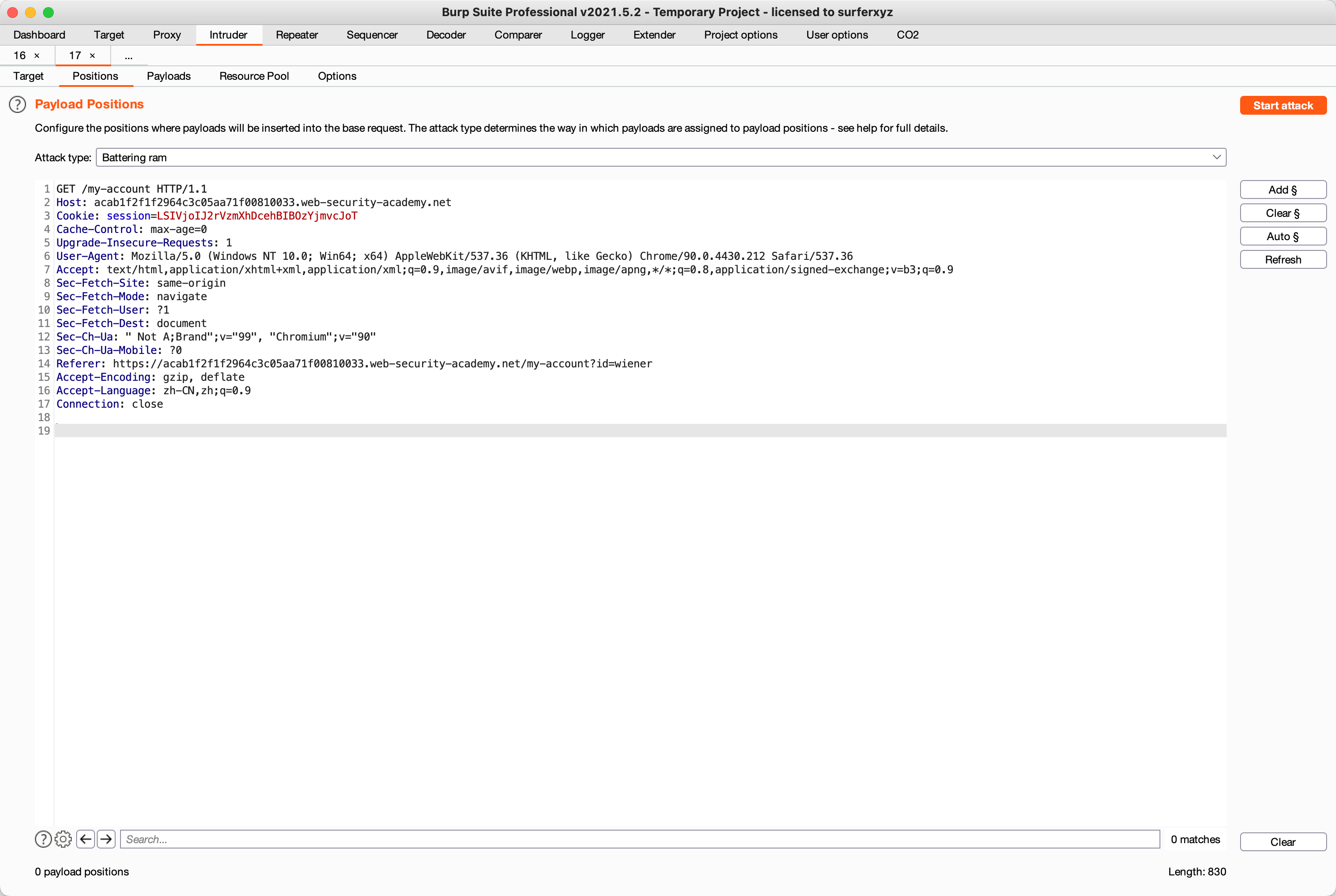 全点 ok ,访问 MY account ,把请求包发送到 Intruder