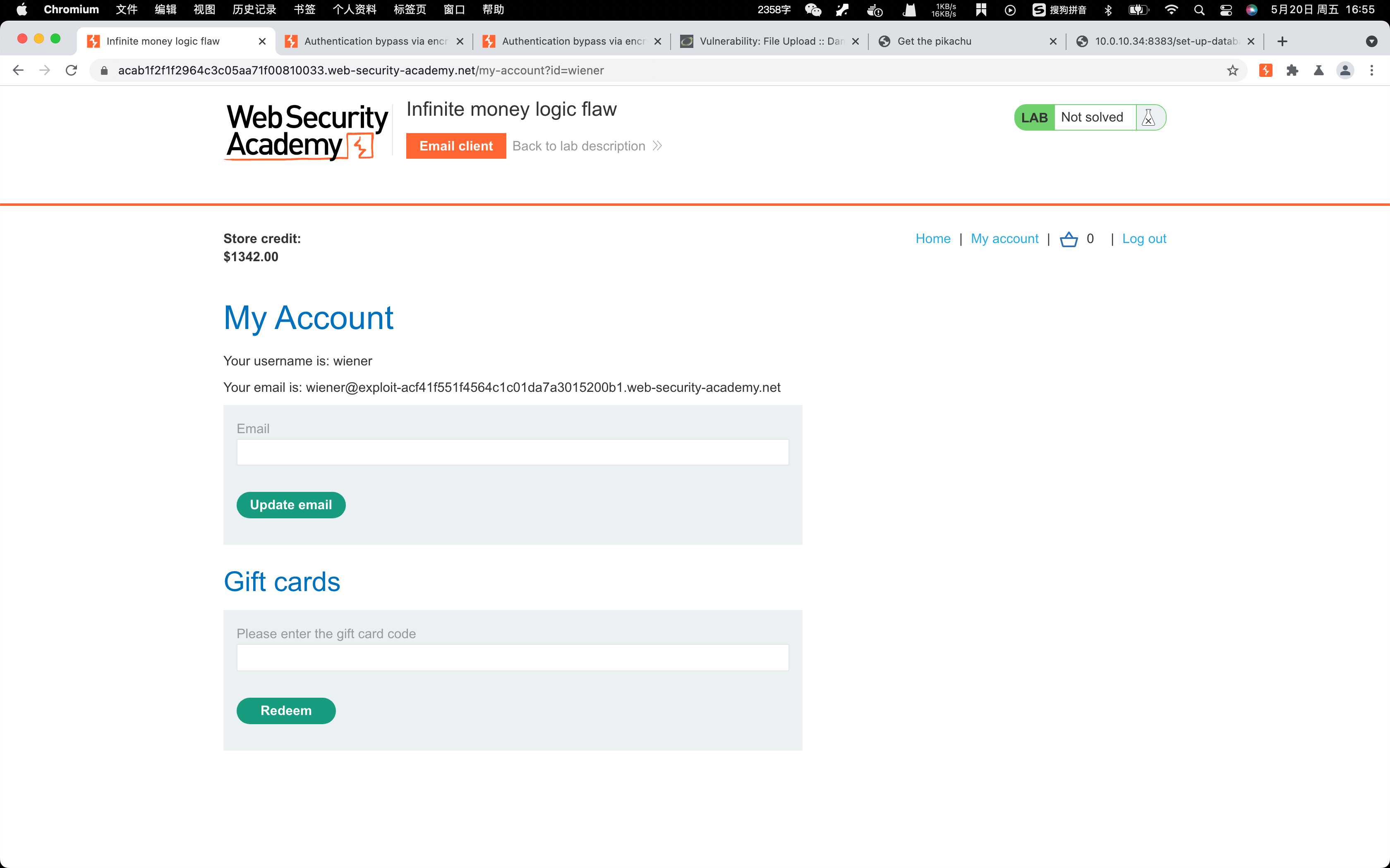 (第十关)[https://portswigger.net/web-security/logic-flaws/examples/lab-logic-flaws-infinite-money]
