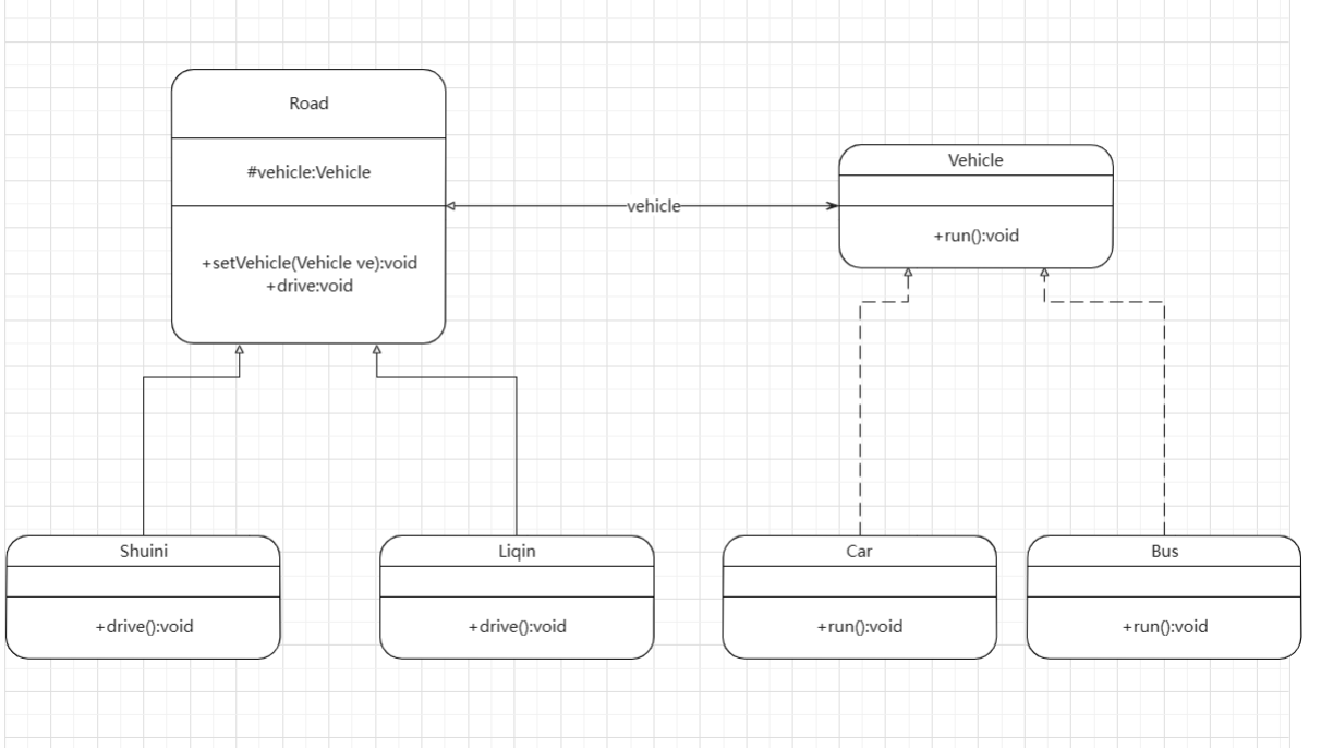 用桥接模式实现在路上开车