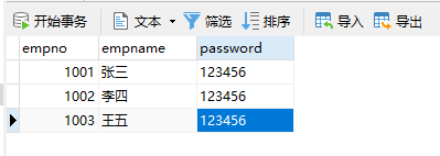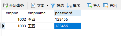 数据库的数据是这些,只查询姓名(empname)所以输出empname