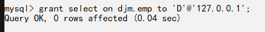 grant select on djm.emp to 'D'@'127.0.0.1';
