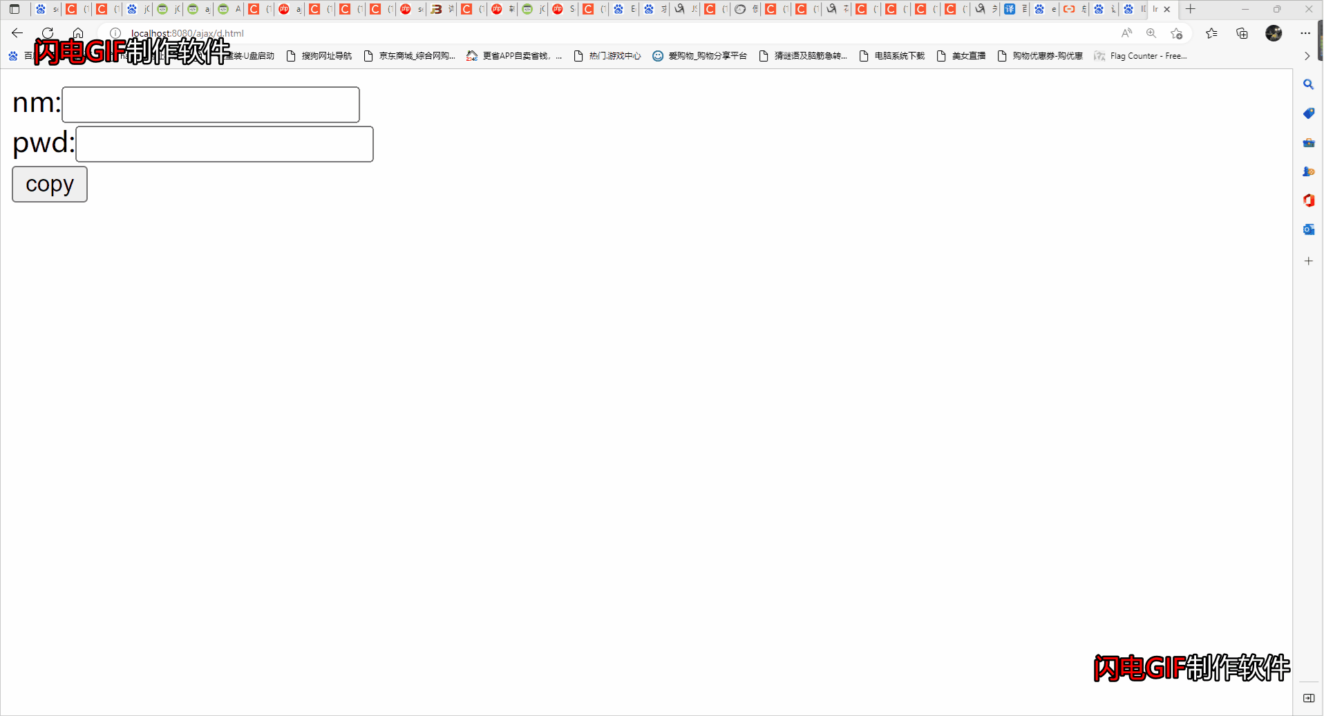 2.写好一个输入框测试,在nm框输入的内容写到pwd框中