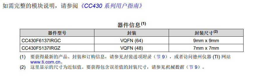 TI CC430 系列超低功耗片上系统 (SoC) 器微控制搭载有集成射频收发器内核,并包含数个采用各种不同外设集的器件,可广泛应用于各种 应用。此架构经过优化,与五种低功耗模式相配合使用,可延长便携式测量应用中的电池 寿命。该器件具有功能强大的 MSP430 16 位 RISC CPU、16 位寄存器和有助于获得最大编码效率的常数发生器。 CC430 系列器件将微控制器内核、外设、软件和射频收发器紧密集成在一起,从而使得这些真正的 SoC 解决方案方便易用,同时性能也得以提高。 CC430F61xx 系列采用微控制器 SoC 配置,将先进的 CC1101 低于 1GHz 射频收发器的出色性能与MSP430 CPUXV2 相结合,提供高达 32KB 的系统内可编程闪存、高达 4KB 的 RAM、两个 16 位计时器、一个具有 8 个外部输入端以及 CC430F613x 器件上所设的多个内部温度和电池传感器的 12 位高性能ADC、一个比较器、USCI、一个 128 位 AES 安全加速器、一个硬件乘法器、一个 DMA、一个带报警功能的 RTC 模块、一个 LCD 驱动器,以及多达 44 个 I/O 引脚。CC430F513x 系列采用微控制器 SoC 配置,将先进的 CC1101 低于 1GHz 射频收发器的出色性能与MSP430 CPUXV2 相结合,提供高达 32KB 的系统内可编程闪存、高达 4KB 的 RAM、两个 16 位计时器、一个具有 6 个外部输入端以及多个内部温度和电池传感器的 12 位高性能 ADC、一个比较器、USCI、一个128 位 AES 安全加速器、一个硬件乘法器、一个 DMA、一个带报警功能的 RTC 模块、一个 LCD 驱动器,以及多达 30 个 I/O 引脚。