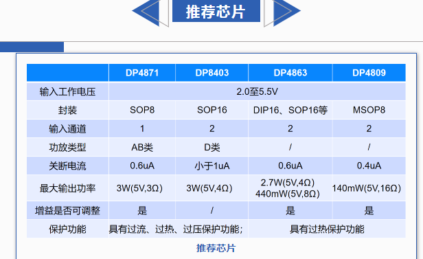 音频放大器是在产生声音的输出元件上重建输入的音频信号的设备,其重建的信号音量和功率级都要理想——如实、有效且失真低。音频范围为约20Hz~20000Hz,因此放大器在此范围内必须有良好的频率响应。根据应用的不同,功率大小差异很大,从耳机的毫瓦级到TV或PC音频的数瓦,再到“迷你”家庭立体声和汽车音响的几十瓦,直到功率更大的家用和商用音响系统的数百瓦以上,大到能满足整个电影院或礼堂的声音要求。 方案优势 1. 高效功率放大:我们的音频功率放大器采用高效功率放大技术,能够有效提升音频信号的放大效率,使得音响输出更加清晰、稳定。无论是低音的沉浸感还是高音的逼真感,都能得到更好的表现,为用户带来极致的听觉享受。 2. 多通道输出:我们的音频功率放大器支持多通道输出,可以同时连接多个扬声器或音箱,覆盖更广泛的区域。通过合理的布局和配置,我们可以实现声音的立体分布,提供更加真实、震撼的音响效果,满足大型场所的需求。 3. 耐用稳定的设计:我们的音频功率放大器采用耐用稳定的设计,具有高质量的电子元件和严格的工艺流程,保证了设备的长期稳定运行。无论是在高温、高湿或高负载的环境下,我们的音频放大器都能够表现出色,保障音响系统的稳定性和可靠性。 4. 智能保护机制:我们的音频功率放大器配备智能保护机制,包括过载保护、短路保护、过热保护等功能,能够有效保护设备和扬声器不受损坏。在异常情况下,系统会自动切断电源,保护设备和人员的安全,避免事故的发生。
