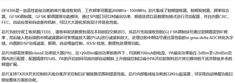 高性价比 SUB-1G 低功耗国产芯片 DP4306 无线收发芯片遥控器遥控模块