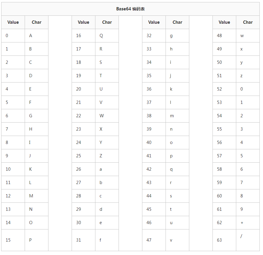 Base64编码可以对字符串(中英文),字节集进行编码转换,核心思想就是3个字节一组进行处理,到最后不足3个字节,用00代替,被代替的用字符=来表示。