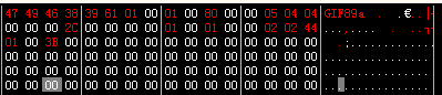 例3、 一张GIF图片(选取一张特别小的图片研究,最后需补全一个字节):