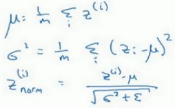 在深度学习兴起后,最重要的一个思想是它的一种算法,叫做 Batch 归一化,Batch归一化会使你的参数搜索问题变得很容易,使神经网络对超参数的选择更加稳定,超参数的范围会更加庞大,工作效果也很好,也会是你的训练更加容易,甚至是深层网络。实践中,经常做的是归一化z(i),i从 1 到m,在神经网络中,已知一些中间值,假设你有一些隐藏单元值,从z(1)到z(m),这些来源于隐藏层,公式计算方差,会取每个z(i)值,使其规范化:z(i)减去均值再除以标准偏差,标准化结果如下: