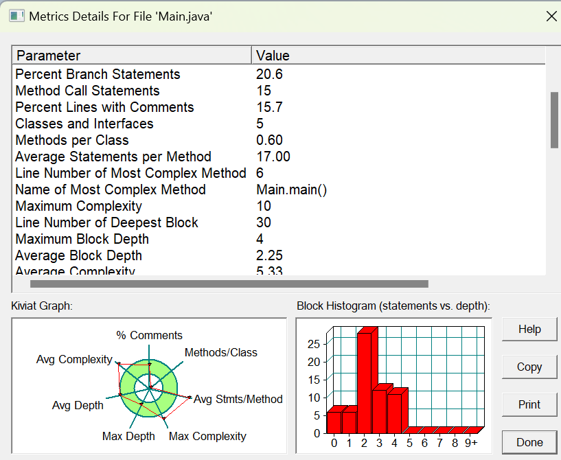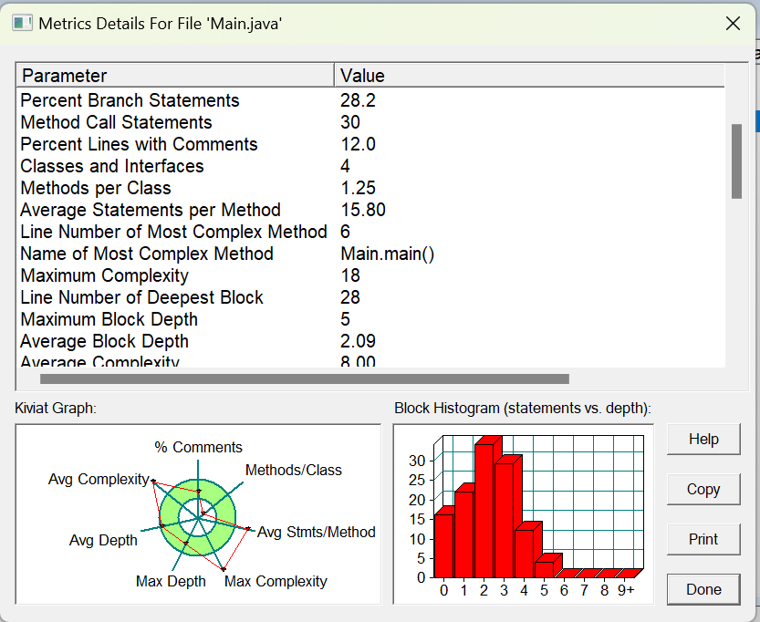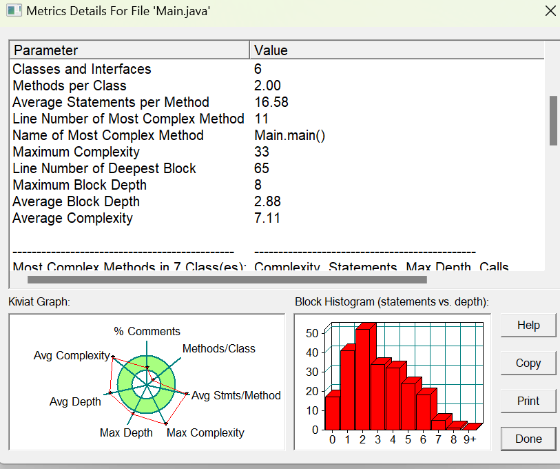 由于在第一次菜单作业当中固有的面向过程的思维当中还没有跳转出来,导致我第二次菜单作业也基本上是使用面向过程的思维,对类的使用也仅仅是调用了极少的方法和一些基本的属性而已。但是第二次难度上升了不少,这种面向过程的思维也导致程序的不可读性上升了很多,程序代码的复杂度也接近了20: