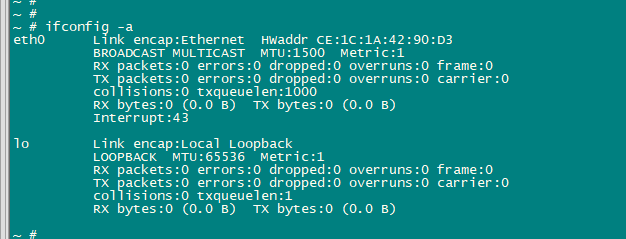 2、如果上面的方法无法解决,说明ifconfig环境变量和应用程序都没问题。用ifconfig -a命令查看如下所示: