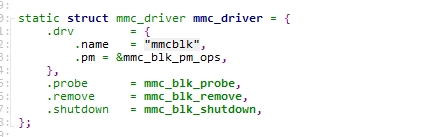 mmc_blk_init函数会注册该驱动,并自动调用mmc_blk_probe函数,下面看一下这个函数中emmc块设备驱动的实现
