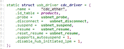 从分层网络模型看,数据链路层和物理层是有硬件实现的,其余层是由内核和应用程序实现的。在上图的有线网络中,数据链路层就是芯片的mac控制器,物理层就是phy芯片。linux中用struct net_device结构体表示一张网卡,这张网卡实际上是对应的mac控制器和phy,用register_netdev注册后就可以用ifconfig命令看到一张网卡。类比一下4g、5g模组,这些模组一般都是用usb口连接到soc芯片中的,4g、5g模组可以看做工作在数据链路层和物理层,网络层、传输层都是在内核实现的。网络数据从应用层一层一层的发下来要经过usb发送给4g模组,然后交给模组再转换成4g、5g信号发出去。这样模组和内核就涉及到网络数据和usb数据的交互问题,所以这里就需要做一个中间件,将网络数据通过usb接口发送给4g模组,或接受模组usb数据转换成网络数据提交给上一层。做这件事的就是ecm,ecm的代码在drivers/net/usb/cdc_ether.c中,它是一个usb_driver驱动,通过usbnet_probe函数注册一张网卡usb0,在usbnet_probe中会定义一个struct net_device,最后用register_netdev注册一张网卡。