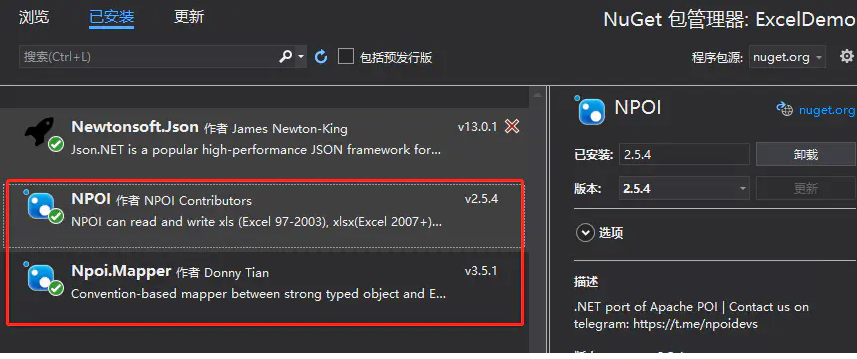 Excel导入导出在开发中是非常常见的,对Excel操作,NPOI使用的是最常用的,但单单用NPOI,要写得代码还是比较多的,可以借助一个Npoi.Mapper库,操作起来就非常简单了,十来行代码就可以对Excel和List互相转换,非常简便。