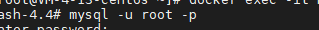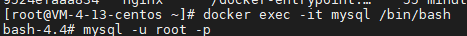 docker exec -it mysql /bin/bash #mysql为数据库容器名称