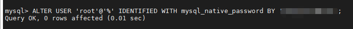 ALTER USER 'root'@'%' IDENTIFIED WITH mysql_native_password BY 'root';