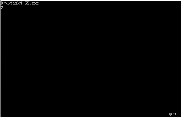 assume cs:code, ds:data data segment str1 db "yes", '$' str2 db "no", '$' data ends code segment start: mov ax, data mov ds, ax mov ah, 1 int 21h mov ah, 2 mov bh, 0 mov dh, 24 mov dl, 70 int 10h cmp al, '7' je s1 mov ah, 9 mov dx, offset str2 int 21h jmp over s1: mov ah, 9 mov dx, offset str1 int 21h over: mov ah, 4ch int 21h code ends end start