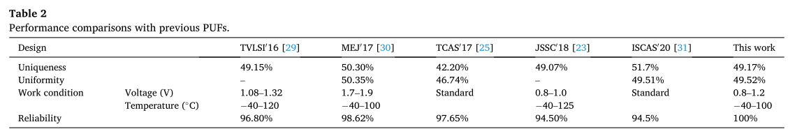 [30]G. Li, et al., A multi-port low-power current mode PUF using MOSFET current- division deviation in 65 nm technology, Microelectron. J. 67 (sep) (2017) 169–175.