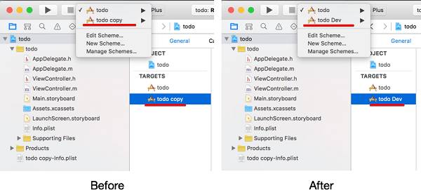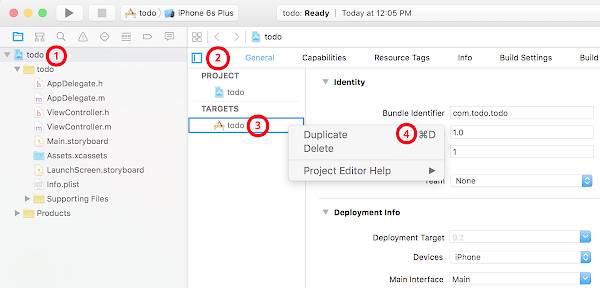 所以你如何在Xcode中创建一个开发的target?我使用示例项目“todo”引导您一步一步完成整个过程。您也可以使用自己的项目并按照步骤: