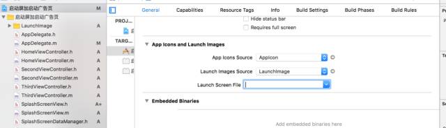 4.将Launch Images Source选择为LaunchImage ,再将Launch Screen File置空。如图: