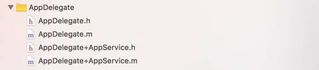 1. AppDelegate是应用的代理,应用级的事件都委托它处理,包含启动退出、推送等事件,以及IM、支付等第三方的回调,这使得AppDelegate内代码庞大,错综复杂,十分不利于阅读和维护,因此我新增了一个AppDelegate+AppService类别,用来处理生命周期之外的业务,AppDelegate作为事件入口,具体实现直接调用类别里的方法,只为更清晰。