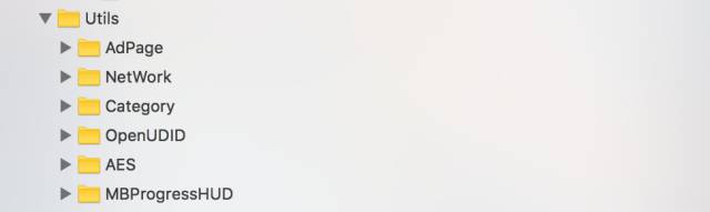 4. Utils文件夹内主要包含全局通用工具,来源于对三方框架的二次封装,或是自己写的工具类。在这个项目里,我封装了带AES加密网络请求工具,全局Toast提示,广告页等。只为更清晰。