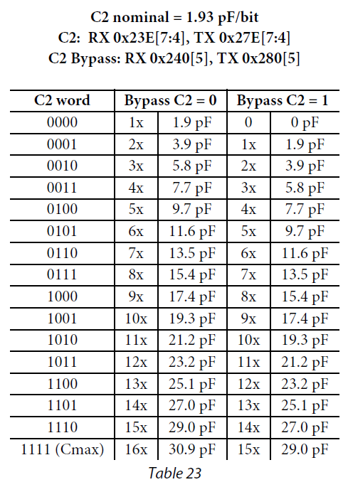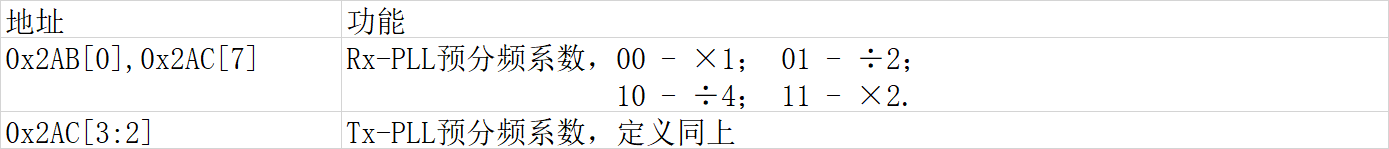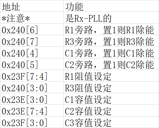 Tx-PLL的电荷泵寄存器地址是把第二个字加4,如0x23B变为0x27B,0x246变为0x286,etc.