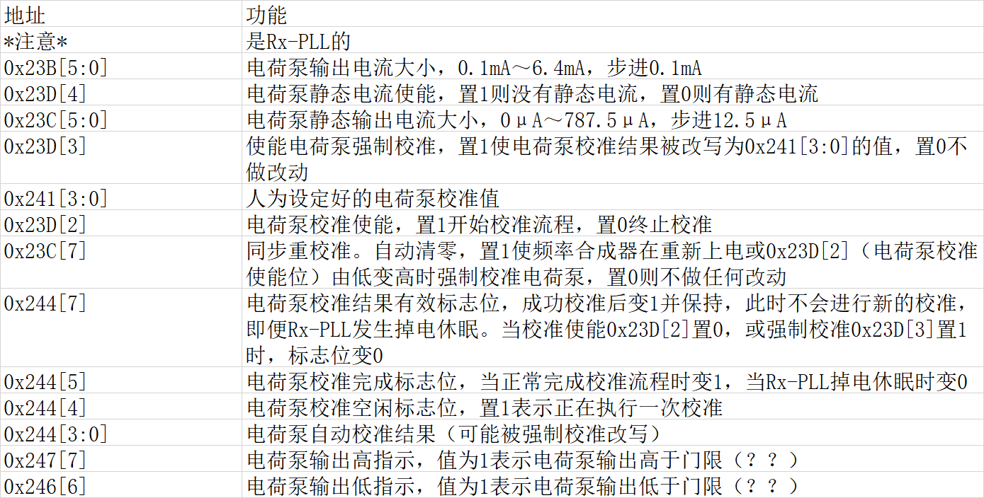 相关寄存器:(这些是Rx-PLL的电荷泵)