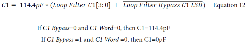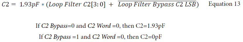 (2)环路滤波器。环路滤波器由电阻电容组成,每一个阻值容值都可以改变,字长4bit,4'b0000表示最小值,4'b1111表示最大值。除了电容C3,每一个元件都有使能位。电阻除能表示短路(0R),电容除能表示开路(0pF)。