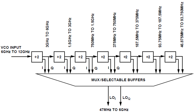 4、2分频链。VCO输出经过2分频得到本振信号。