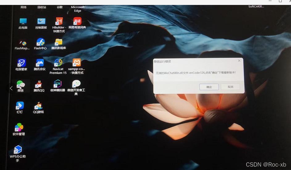 无效的wechatwin.dll文件errcode:126,点击“确定”下载最新版本