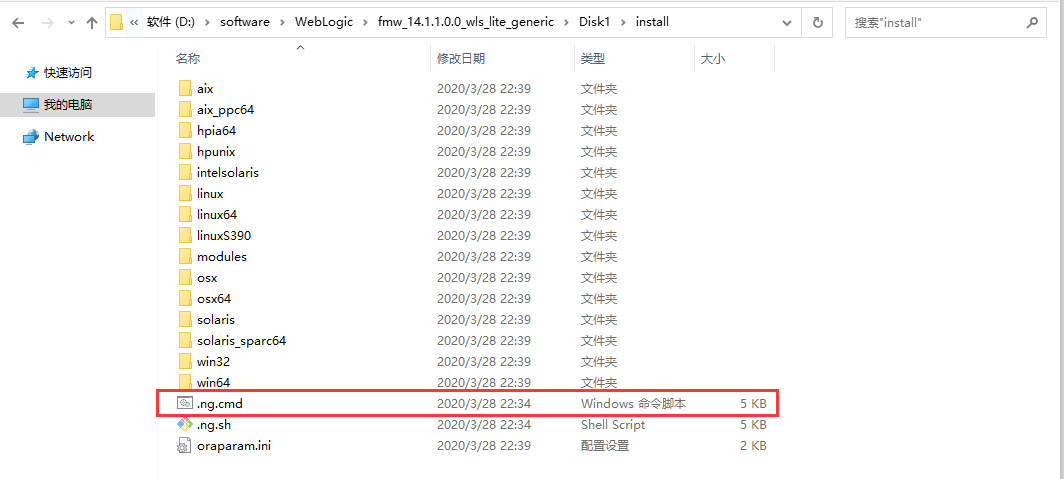 (2)打开目录中的Disk/install安装目录,找到名为ng.cmd的脚本文件