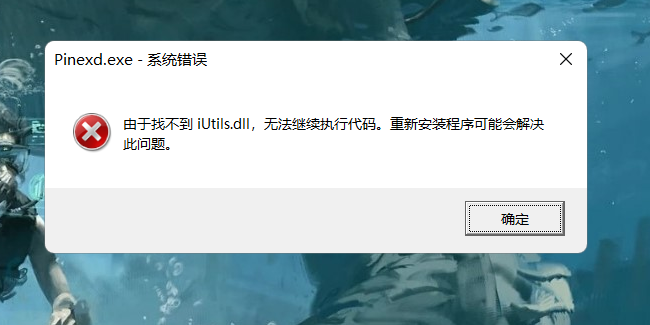 由于找不到iUtils.dll,无法继续执行代码。重新安装程序可能会解决此问题。