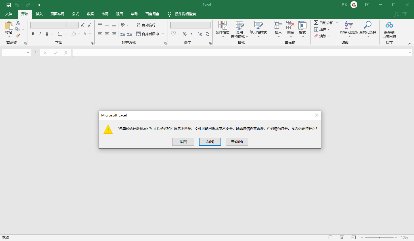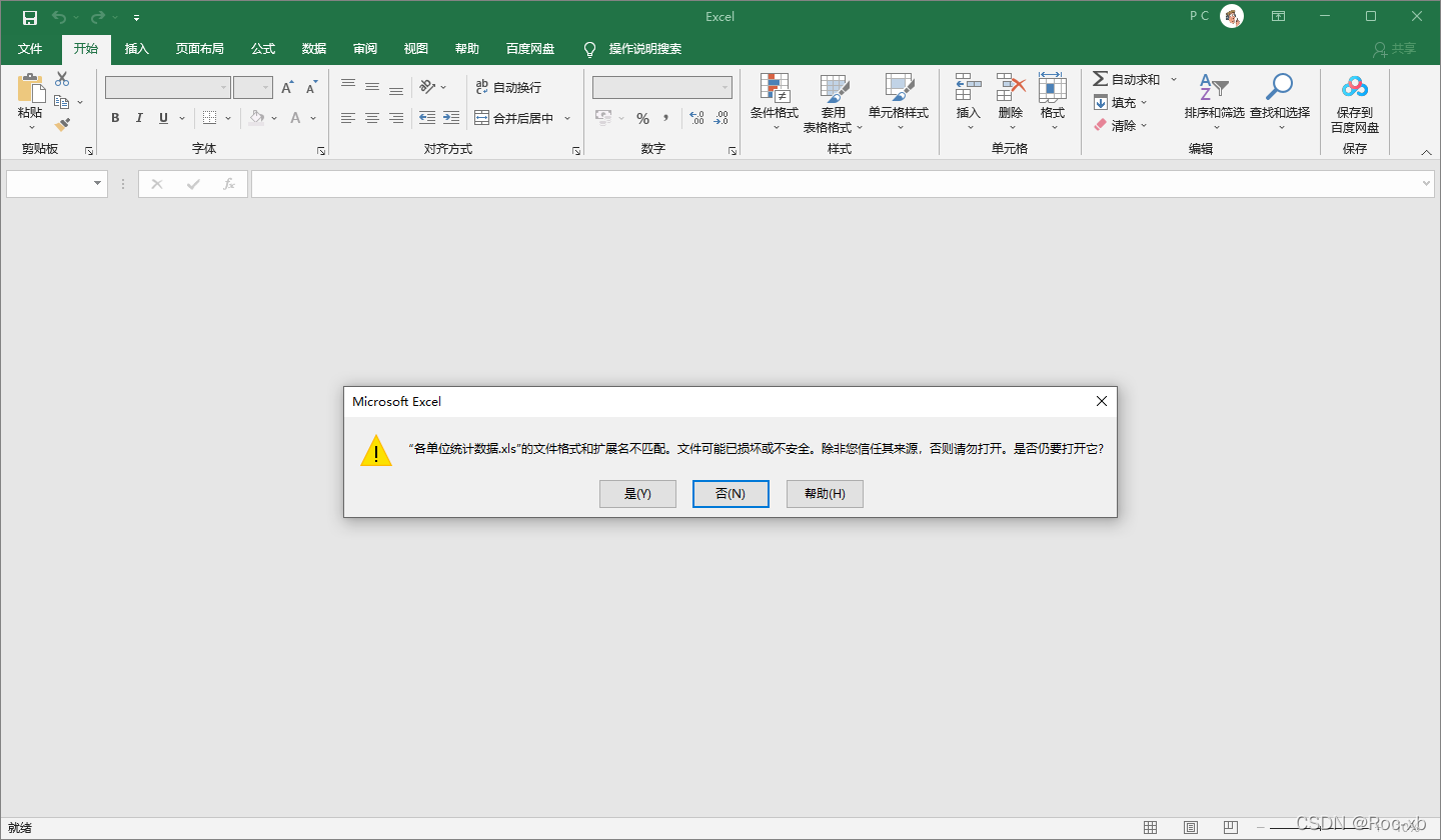 文件格式和扩展名不匹配。文件可能已损坏或不安全。除非您信任其来源,否则请勿打开。是否仍要打开它?