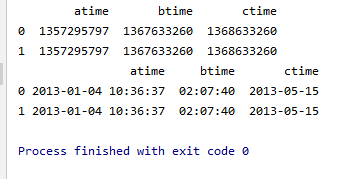 df = pd.DataFrame(items, columns=['atime', 'btime', 'ctime'])