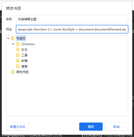 为了更方便实用,我们将代码加入书签里