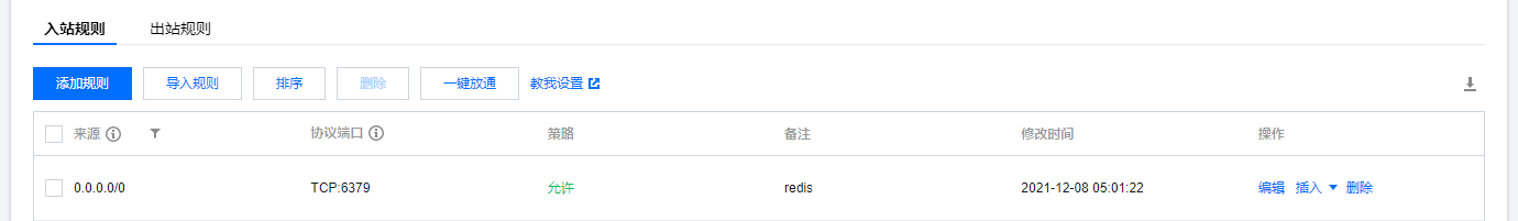 以腾讯云服务器举例(放行redis默认端口6379):