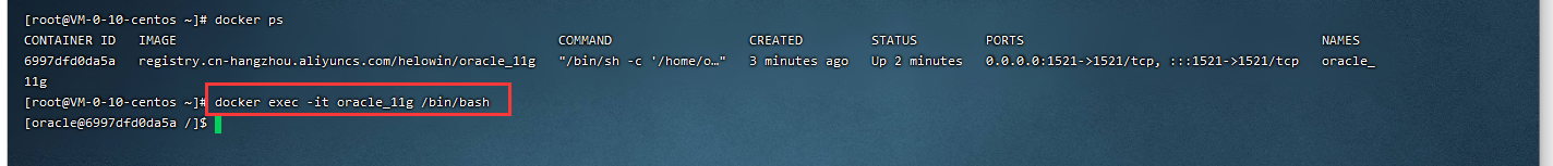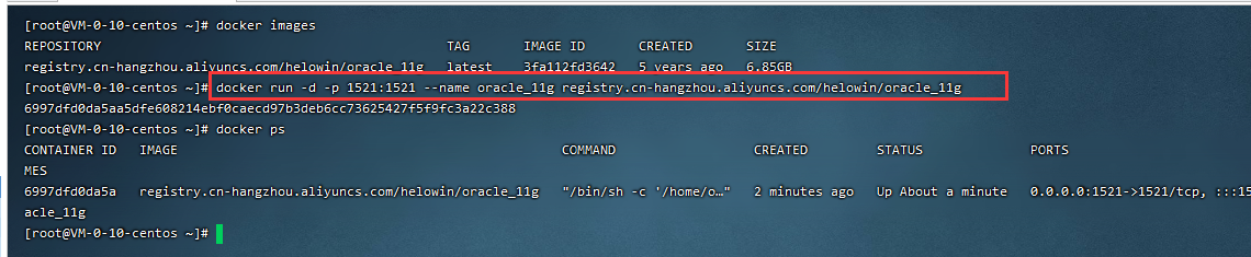 docker run -d -p 1521:1521 --name oracle_11g registry.cn-hangzhou.aliyuncs.com/helowin/oracle_11g