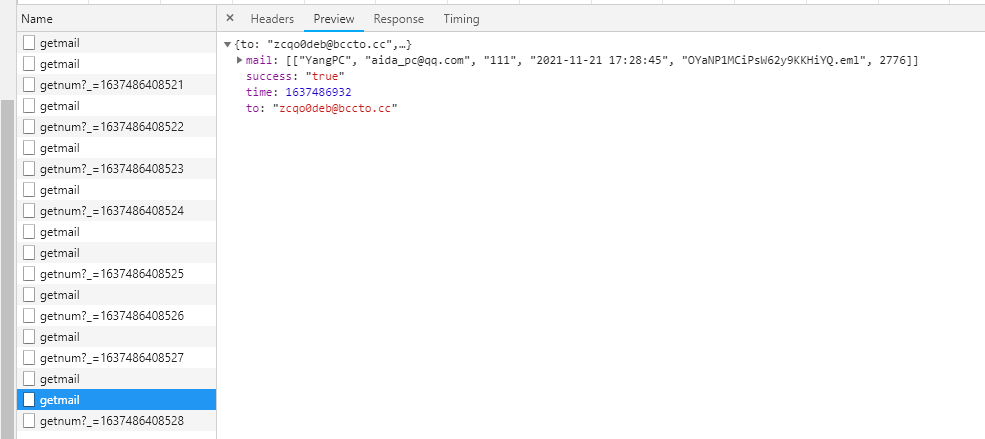 其次我们注意到,下面有一个轮询请求,应该就是再获取该邮箱是否有接收到新邮件,以便于实时更新到网页上。