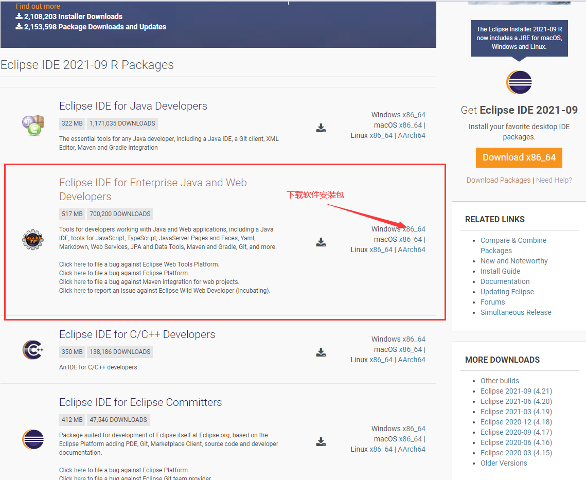 官网下载地址:https://www.eclipse.org/downloads/