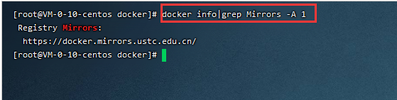 可以看到,我们的镜像源已经配置成功了,再次拉取镜像的时候,速度会有明显的提升。