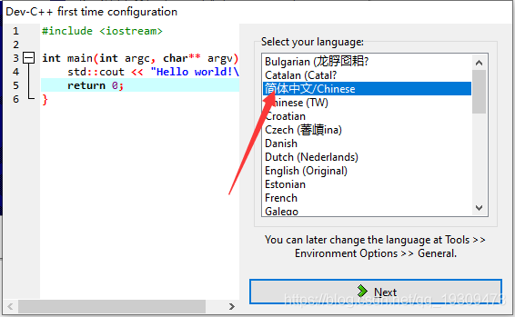 (7)选择简体/Chinese,设置界面语言,然后点击Next,进行下一步。