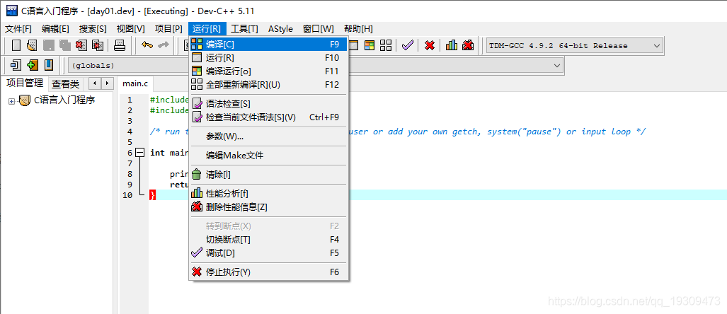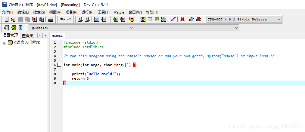 ①先按快捷键F9(编译),再按快捷键F10(运行)