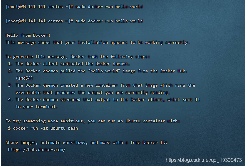 通过运行 hello-world 映像来验证是否正确安装了 Docker Engine-Community 。